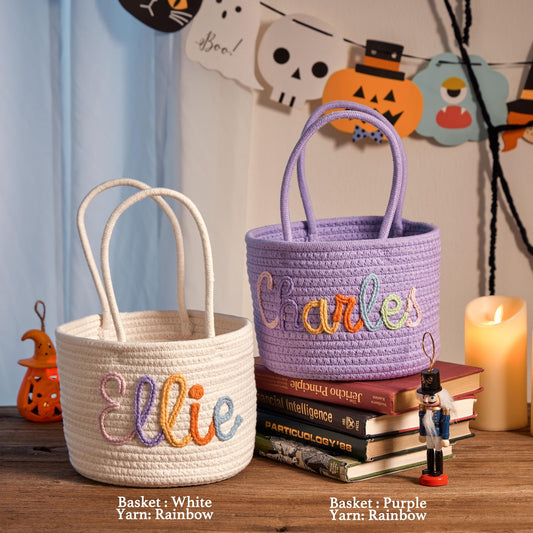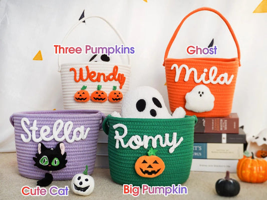 Customized Halloween Treat Basket - Personalized Trick or-Treat Bucket, Spooky Candy Bag Collection for Kids & Family, Ghost-Themed Gift Handcrafted Candy Pail