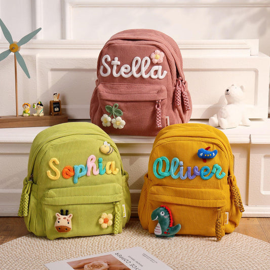 High-quality school backpack made of corduroy fabric – with embroidered name field