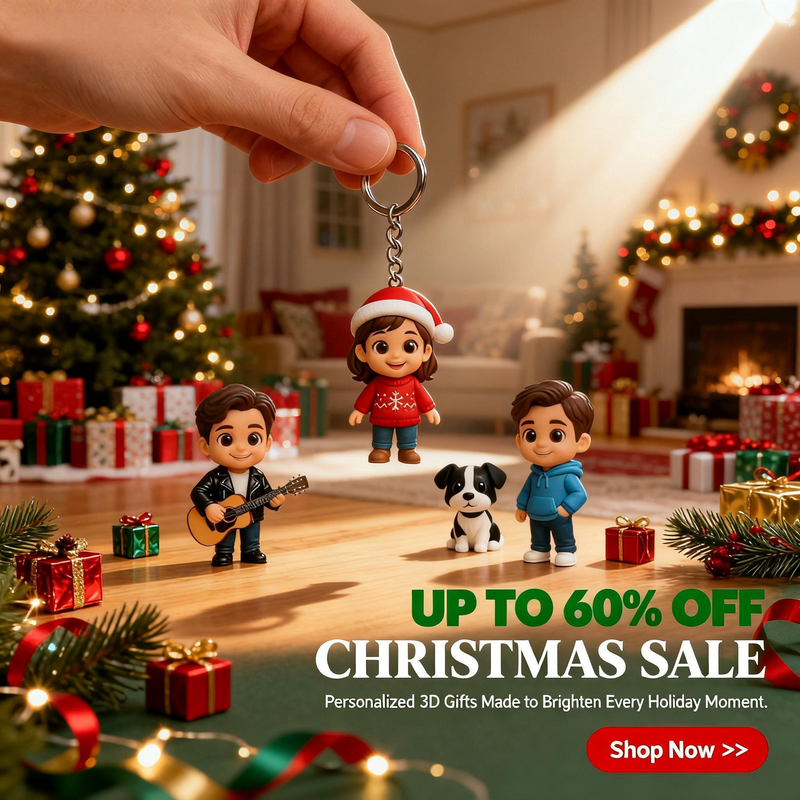 Custom 3D Figure Keychain From Photo Personalized Christmas Keychain Gift For Holiday Season