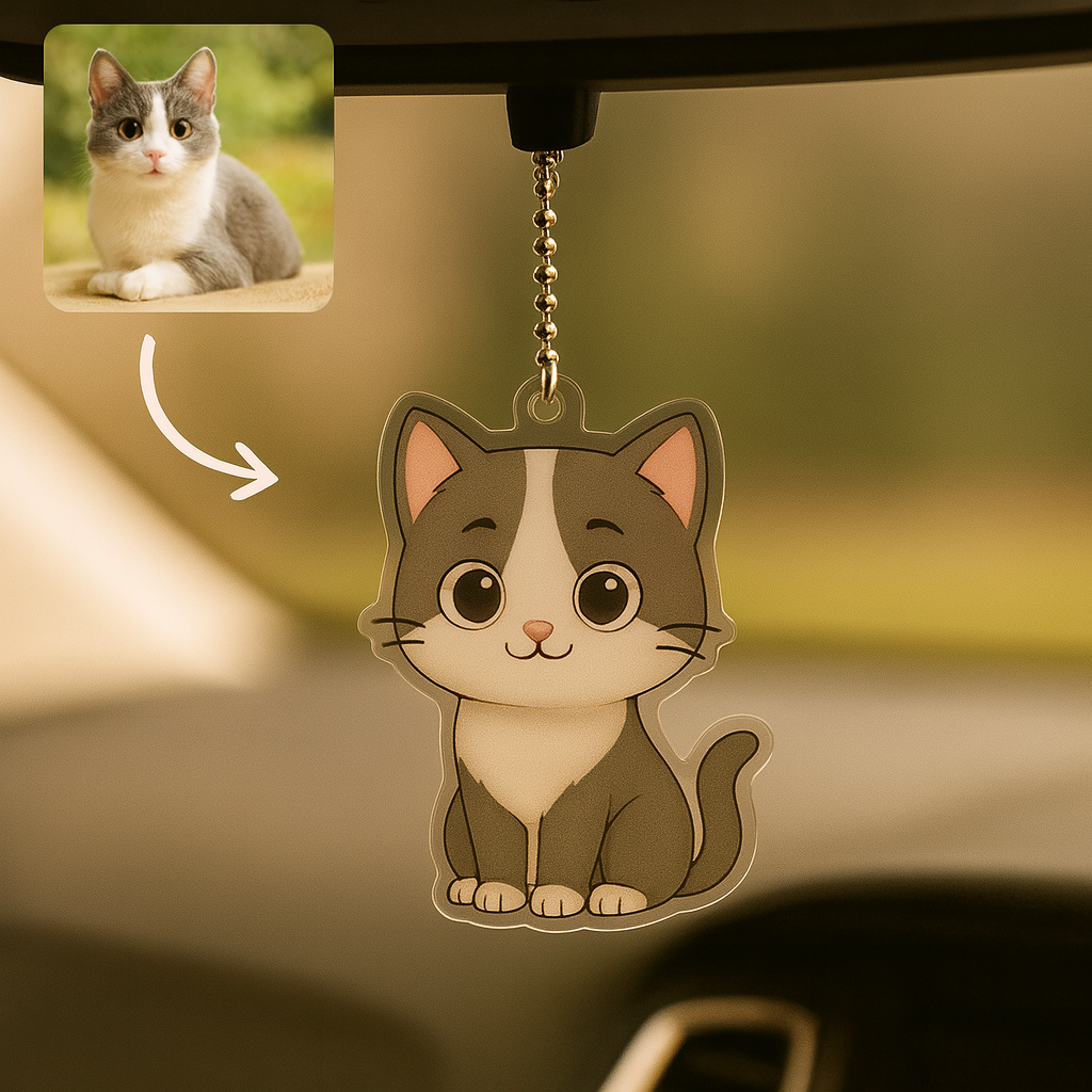 Our Custom Acrylic Cartoon Car Hanger turns your favorite photo into a sweet cartoon-style work of art, designed to bring a personalized touch to your vehicle’s interior. Whether dangling from the rearview mirror or brightening up your daily commute, this piece turns every drive into a memory-filled journey.