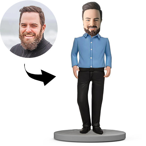 Custom Bobblehead Personalized Bobblehead Boss With A Blue Shirt