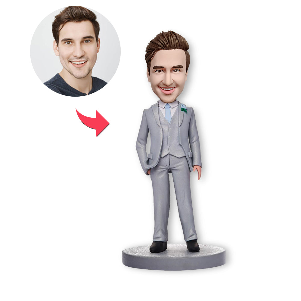 Custom Bobblehead Personalized Bobblehead Grey Suit Businessman