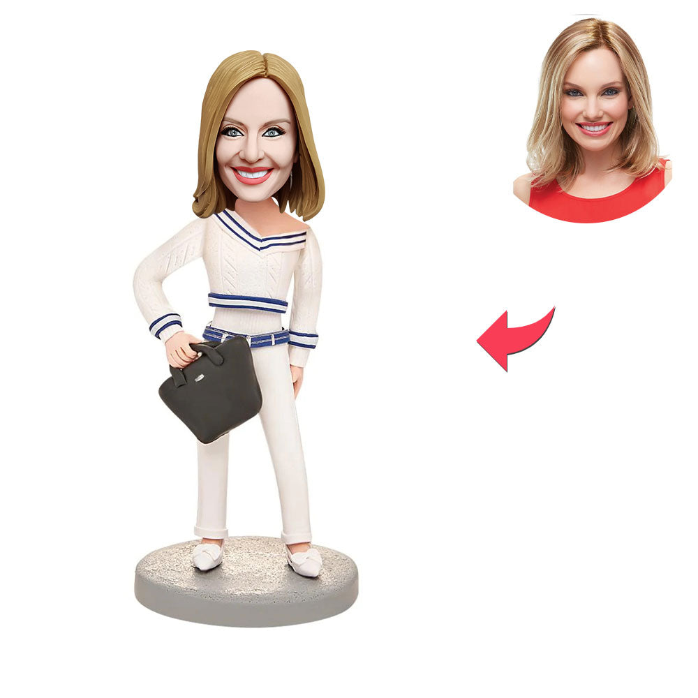 Custom Bobblehead Personalized Bobblehead White Suit Female Gifts For Her