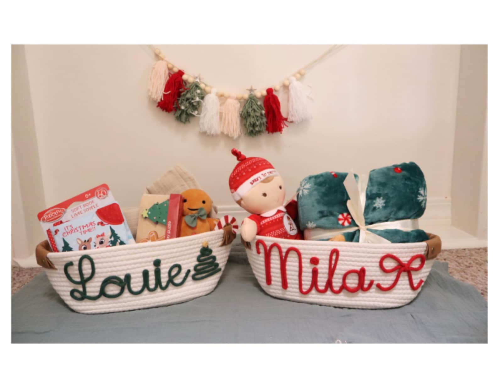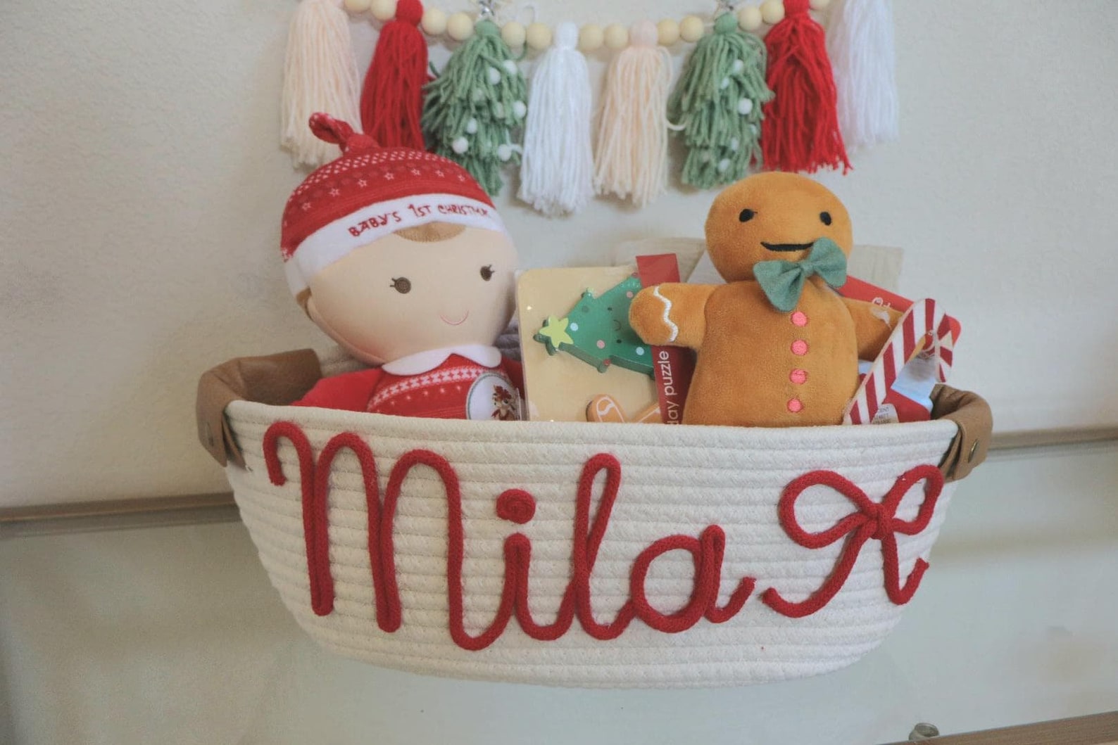 Custom Name Christmas Gift Basket for Kids Personalized Holiday Present