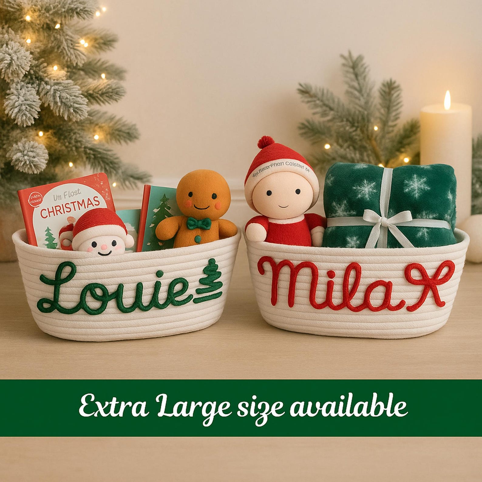 Treat your little elves and snow angels to the ultimate holiday experience with our handcrafted Custom Christmas Basket! Perfect for carrying gifts, storing sweet treats, and adding a touch of personalized charm to your festive decor, this beautifully designed basket isn’t just a container—it’s a treasured part of your family’s Christmas tradition. Whether you're celebrating at home, visiting family, or surprising someone with a thoughtfully prepared gift set, this basket brings warmth, joy, and practicality together in one magical accessory.