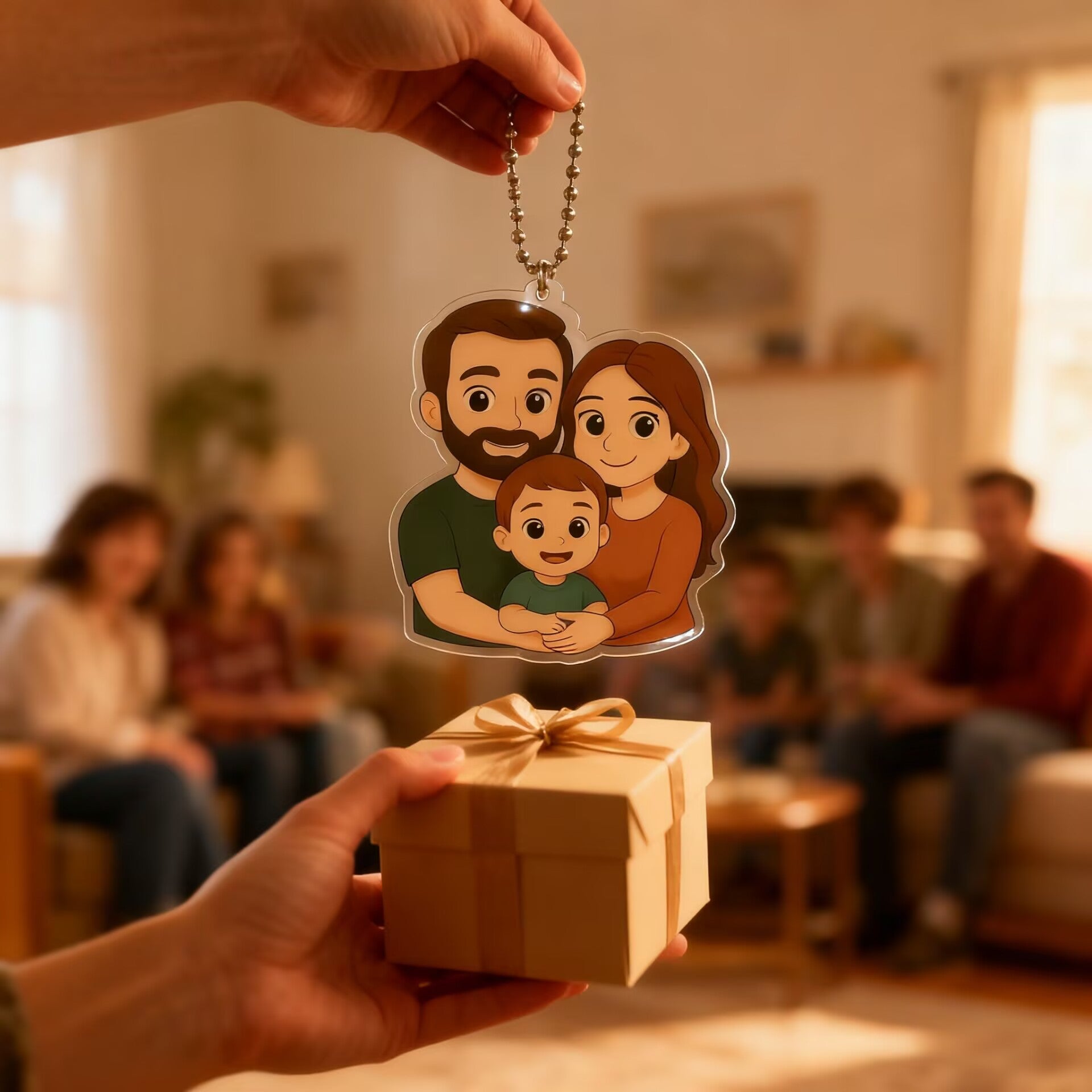 2️⃣ Customize: We illustrate it in a charming cartoon style and print it on high-quality acrylic.