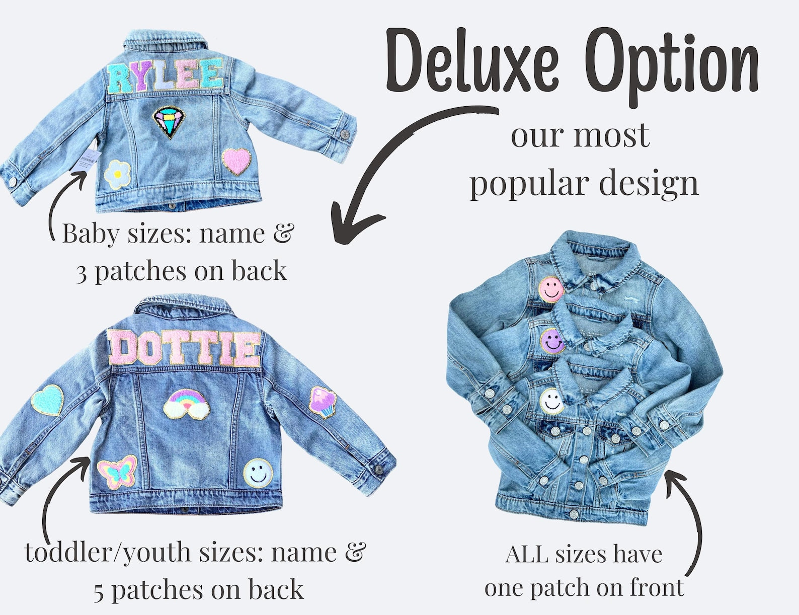 Order your custom kids’ denim jacket today and let them shine in their one-of-a-kind outfit! 🎁✨