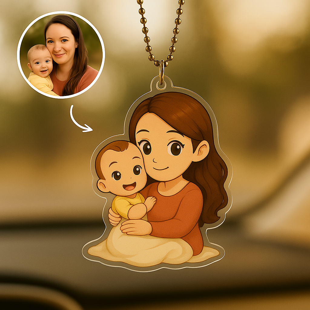 Our Custom Acrylic Cartoon Car Hanger turns your favorite photo into a sweet cartoon-style work of art, designed to bring a personalized touch to your vehicle’s interior. Whether dangling from the rearview mirror or brightening up your daily commute, this piece turns every drive into a memory-filled journey.